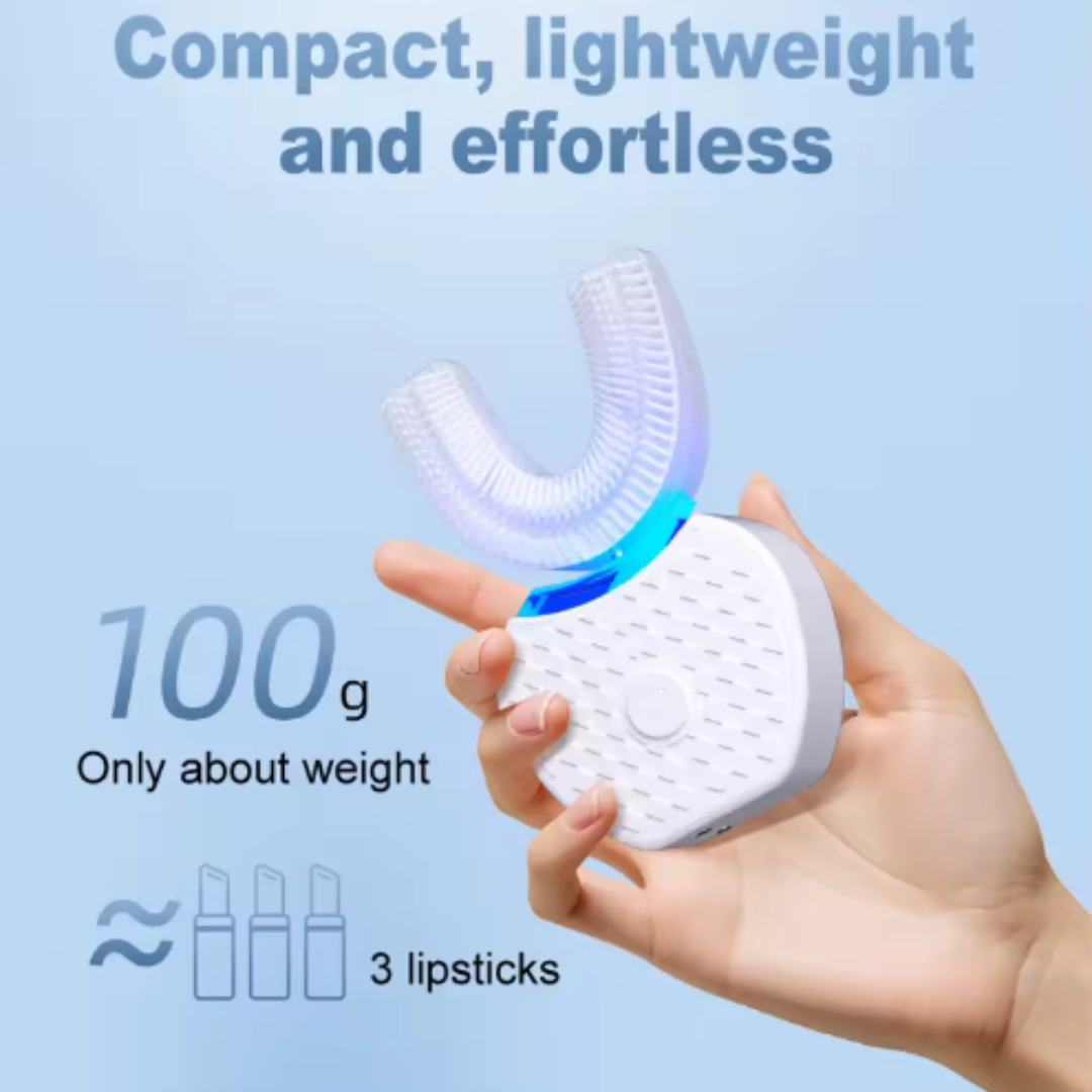 Experience a faster, smarter clean with "PureSmile Pro", our U-Shape Sonic Toothbrush. Its soft antibacterial silicone wraps around your teeth for a 360° deep clean all in just 30 seconds. Whiter teeth, fresher nreath, zero effort.